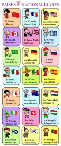 Infografía, vídeo y actividades para aprender los países y nacionalidades del mundo hispano y del resto del mundo en español nacional. A continuación presentamos una lista de países con sus respectivas nacionalidades en inglés